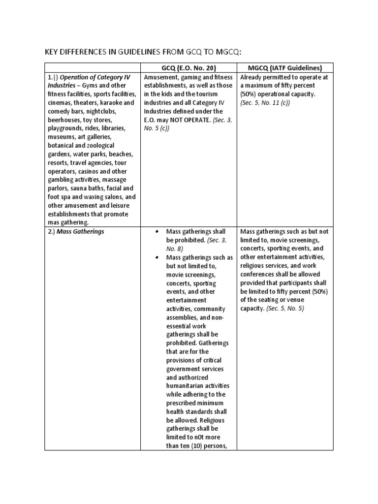 Gcq Mgcq Difference : What Are The Differences Between Gcq And Mgcq Aviso - Here are the rules governing mass gatherings in both gcq or mgcq preliminarily, the movement of all persons in areas placed under gcq is limited to accessing essential goods and services, and for work in the offices or industries permitted to operate [revised omnibus guidelines, sec.